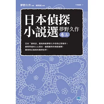 虐待狂刑警 蝴蝶效應殺人事件 | 日本偵探小說選 夢野久作 卷三 日本「變格派」最高典範夢野久作怪奇幻想傑作! | 日本偵探小說選 大阪圭吉 卷一 日本戰前短篇本格第一人大阪圭吉名作精選! | 日本偵探小說選 大阪圭吉 卷二 日本本格推理奇蹟作家大阪圭吉短篇精選! | ||||